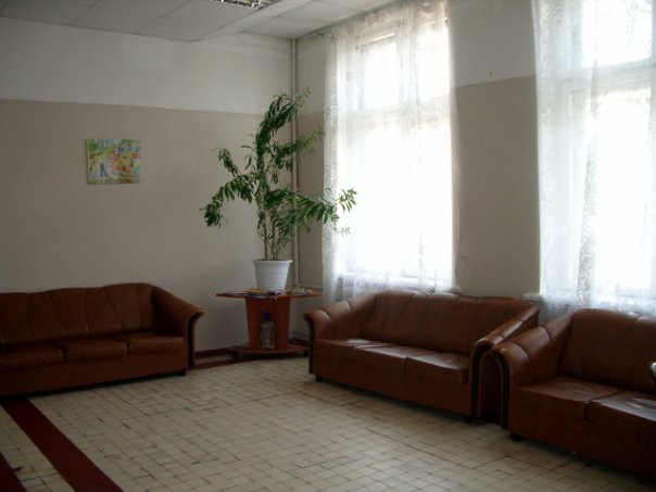 большие палаты, стол, стулья. В коридоре достаточно много